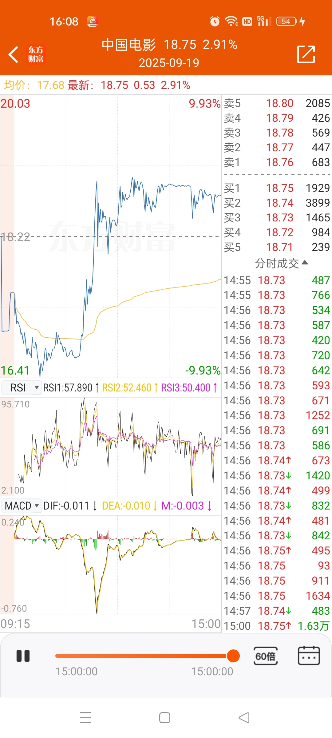 $中国电影(SH600977)$ 这一天尾都是抛压,今天一整天都没有突,周一还要磨,不知道能不能上去