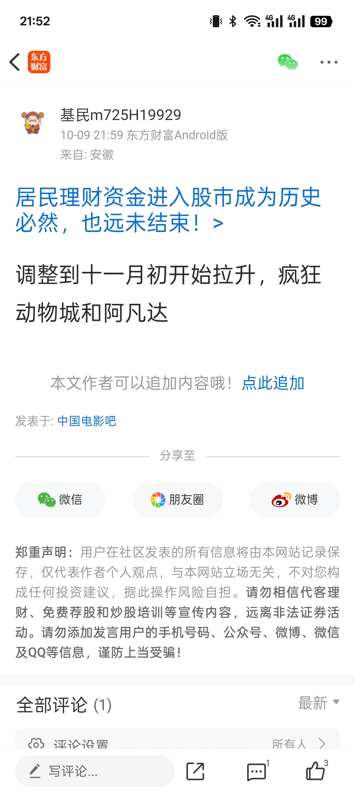 温馨提示: 1.根据《证券法》规定,禁止编造、传播虚假信息或者误导性信息,扰乱证券市场;2.用户在本社区发表的所有资料、言论等仅代表个人观点,与本网站立场无关,不对您构成任何投资建议。用户应基于自己的独立判断,自行决定证券投资并承担相应风险。《东方财富社区管理规定》