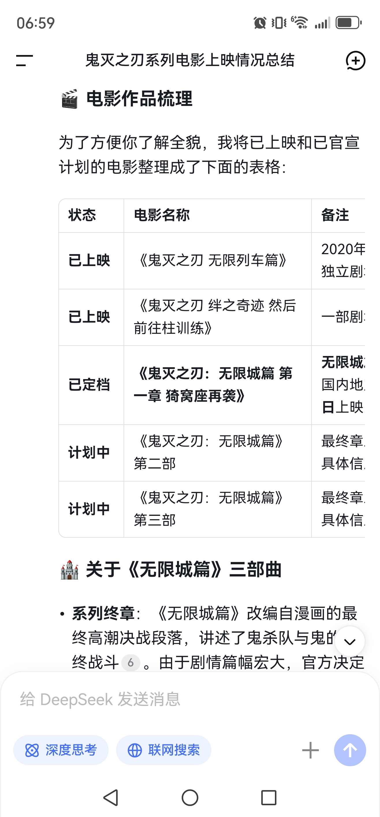 $中国电影(SH600977)$ 早醒睡不着查了一下鬼灭之刃资料,无限城一共有三部,现在上映的是第一部,后面还有两部计划中,第一部能上映,后面两部有可能国内同步上映,预期满满,这才是主力最看重的点。