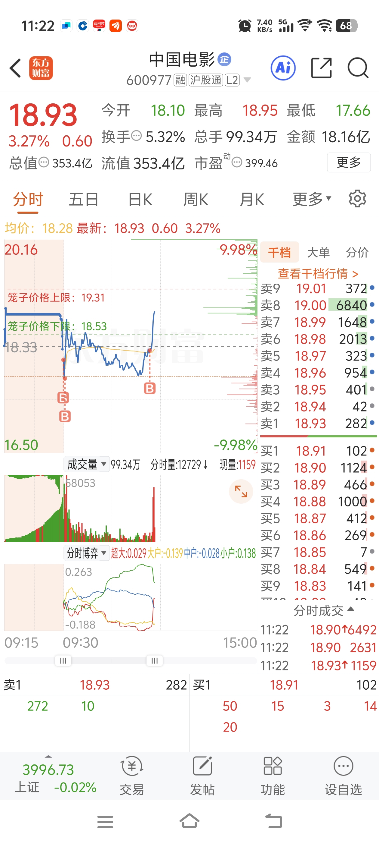 $中国电影(SH600977)$ 是我买入后拉升滴,这感觉真好