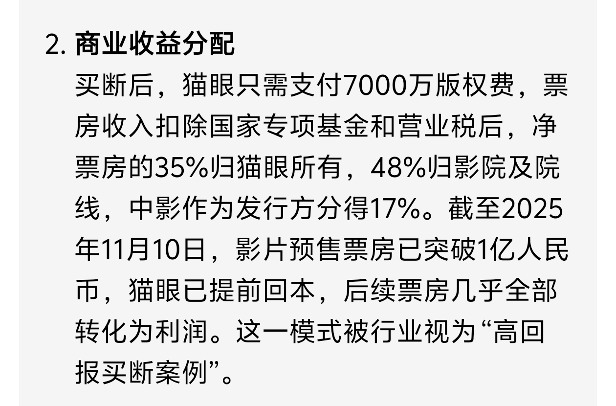 中影还是牛,不出钱只作为发行方,拿票房的17%的利润,一分钱不花坐着拿钱,纯利润