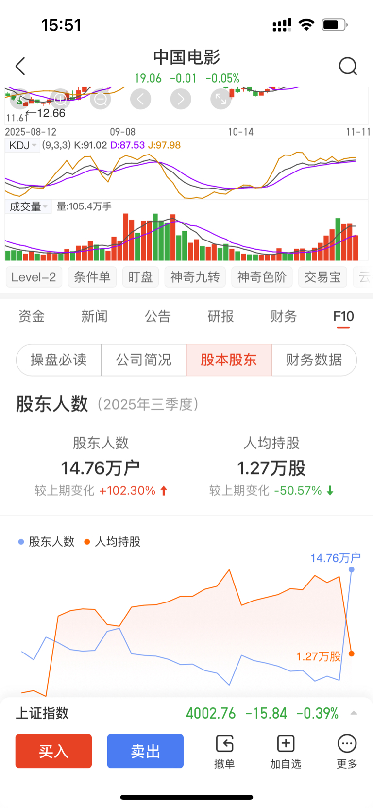 $中国电影(SH600977)$ 散发涨了百分之100多