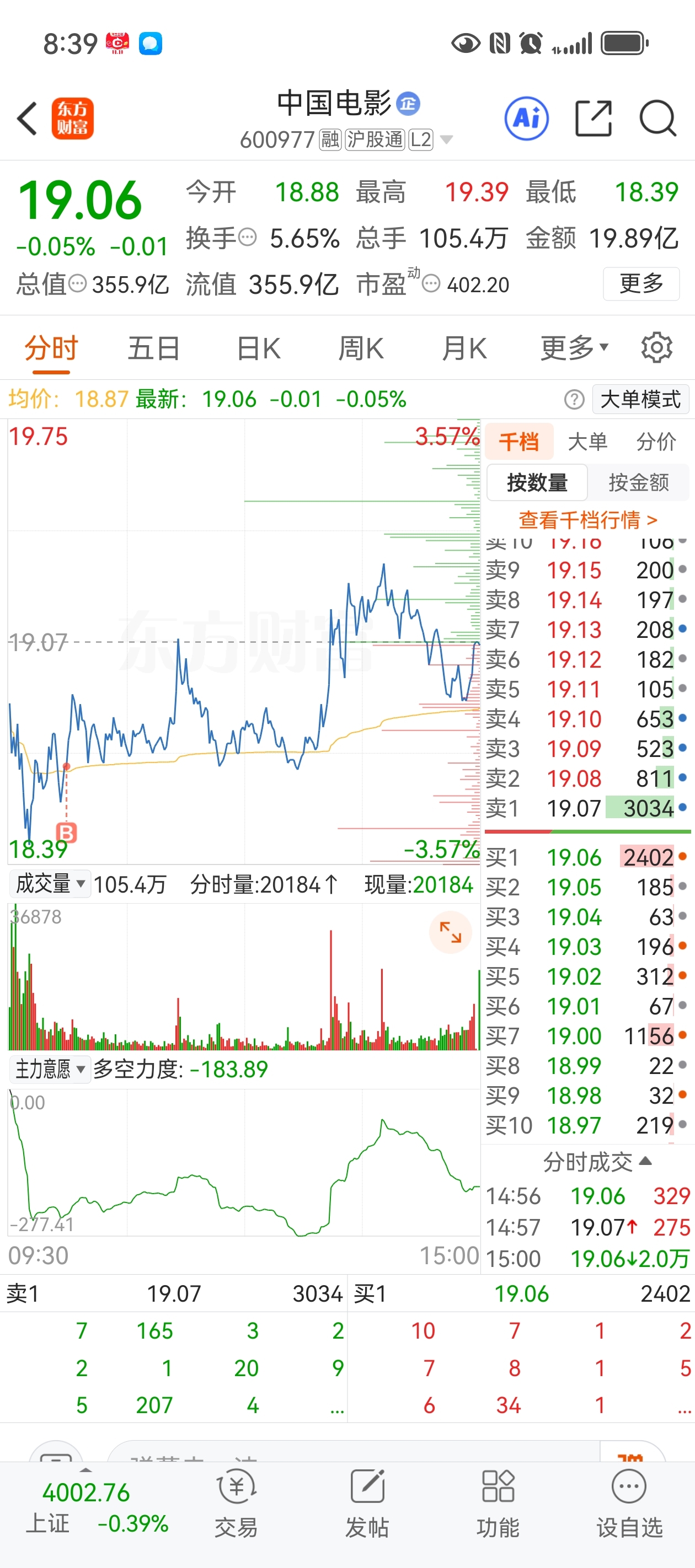 $中国电影(SH600977)$ 水下满仓,感谢主力给机会,明天涨停