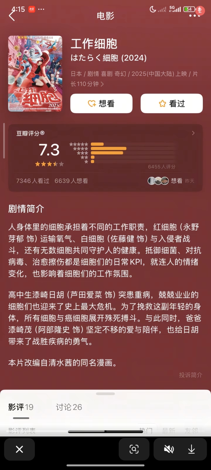 $中国电影(SH600977)$ 豆瓣评分7.3分的科普电影工作细胞宣布引进。可以带小孩看。