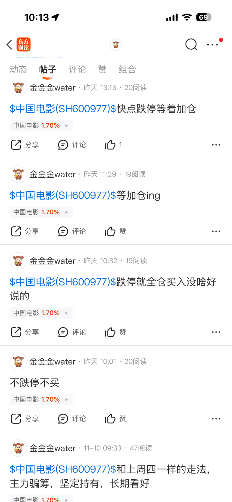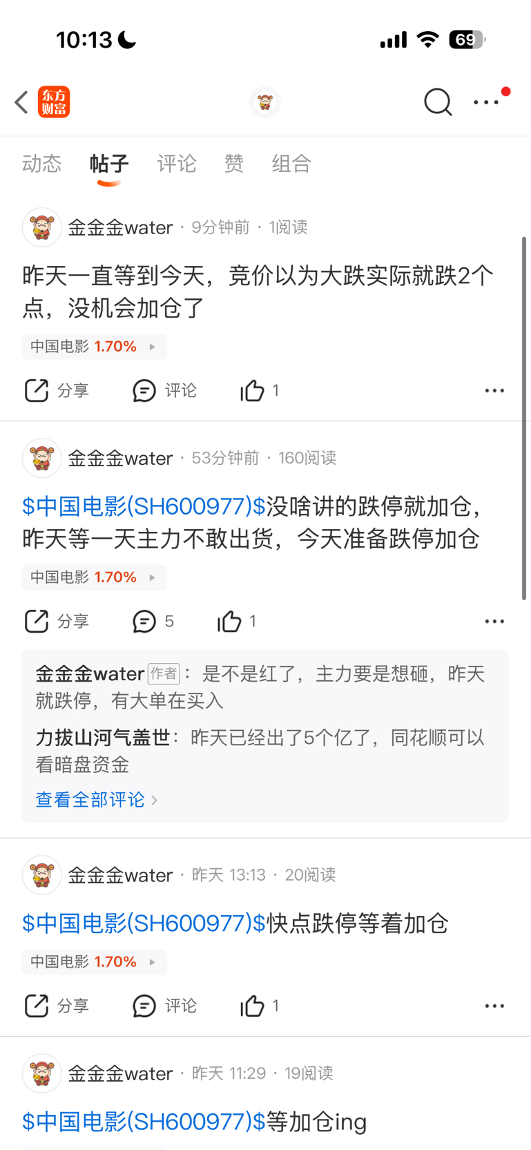 $中国电影(SH600977)$ 不给上车机会怎么办呢?今天最低点17.14,周二收盘价正好跌停价格。主力控盘,上周四最低点也是17.14,烦死了,又没加仓,玩不过主力,可恶