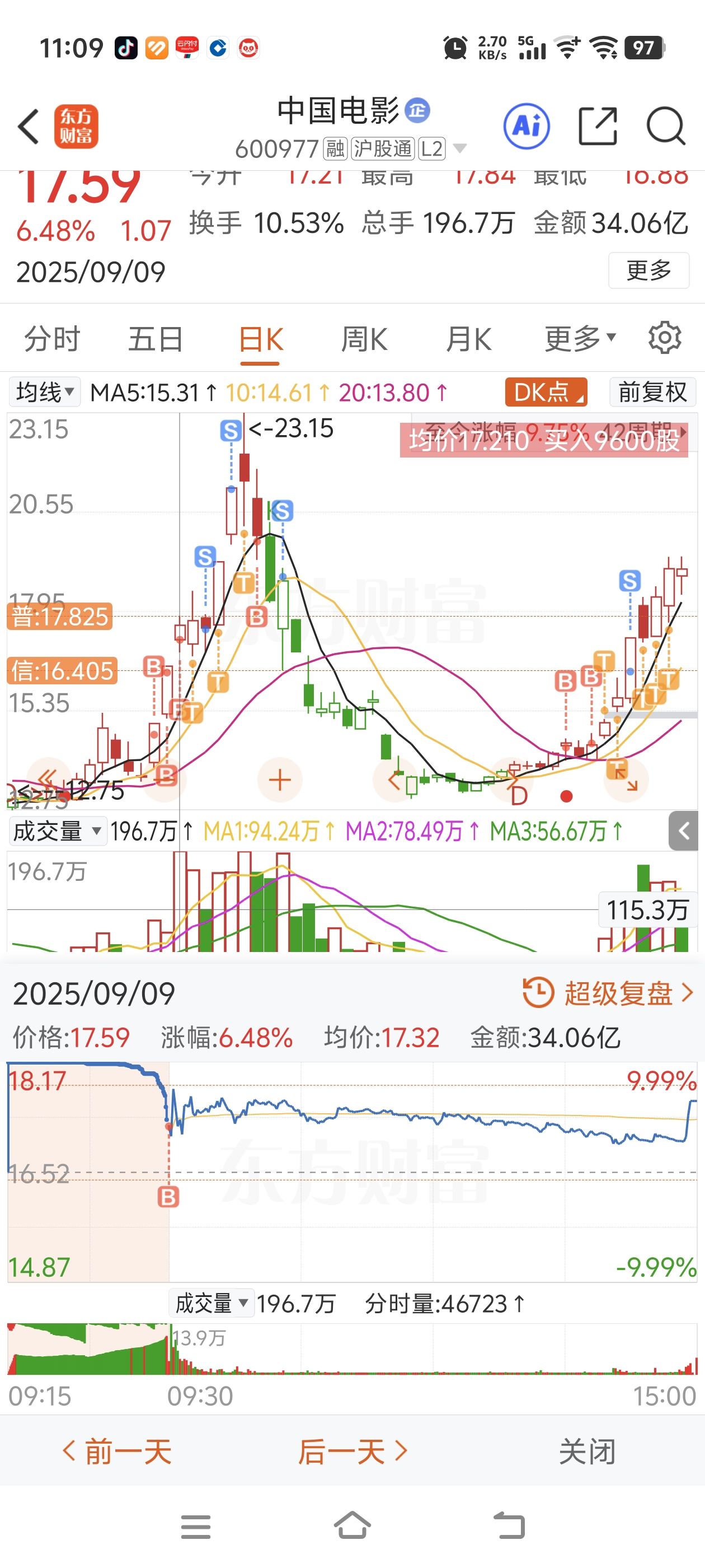 $中国电影(SH600977)$ 9月月号围绕拉升6个点,后面好几个涨停,今天11月13号不会轻易下车滴