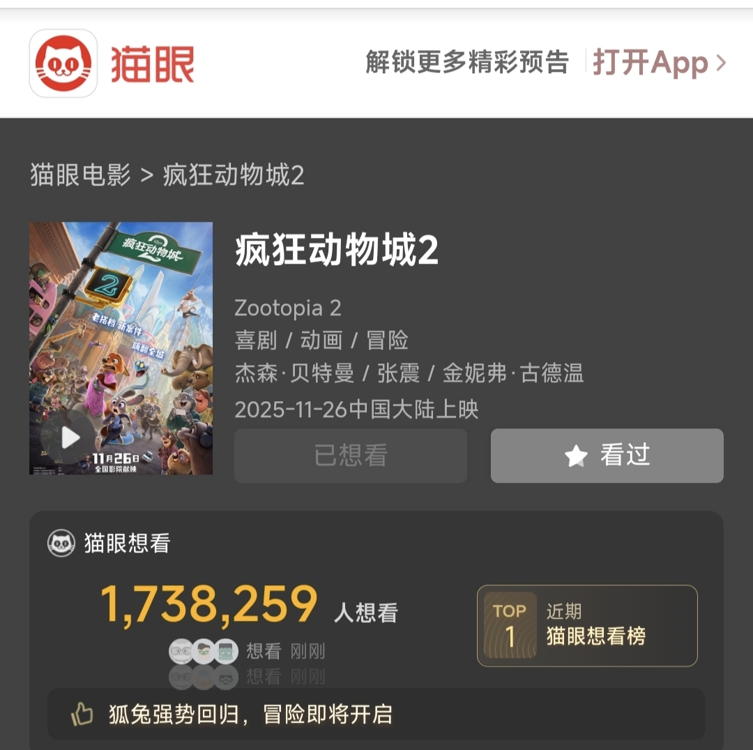 $中国电影(SH600977)$ 家人们,马上突破180万,大家继续点击呀!能转达猫眼转发,拜托