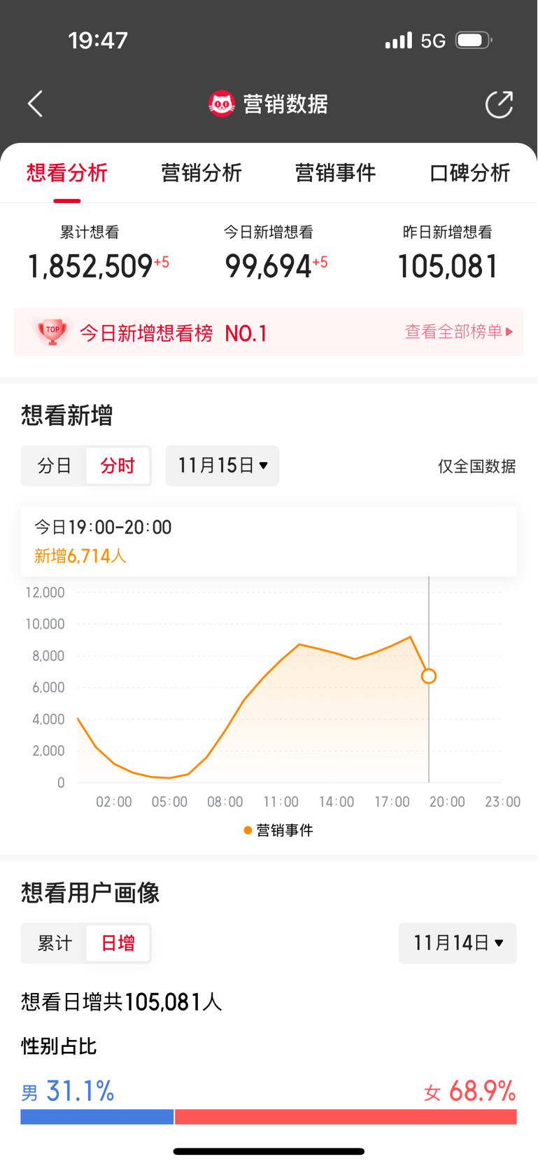 $中国电影(SH600977)$ 动物城 想看人数185万排名猫眼历史 第五.