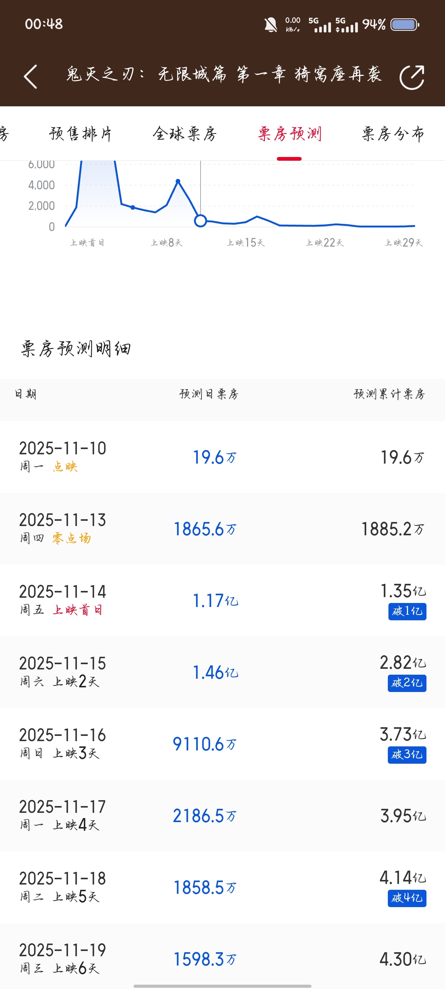 什么叫超预期?来看看猫眼预测的前三天票房实际上鬼灭前两天就达到了。