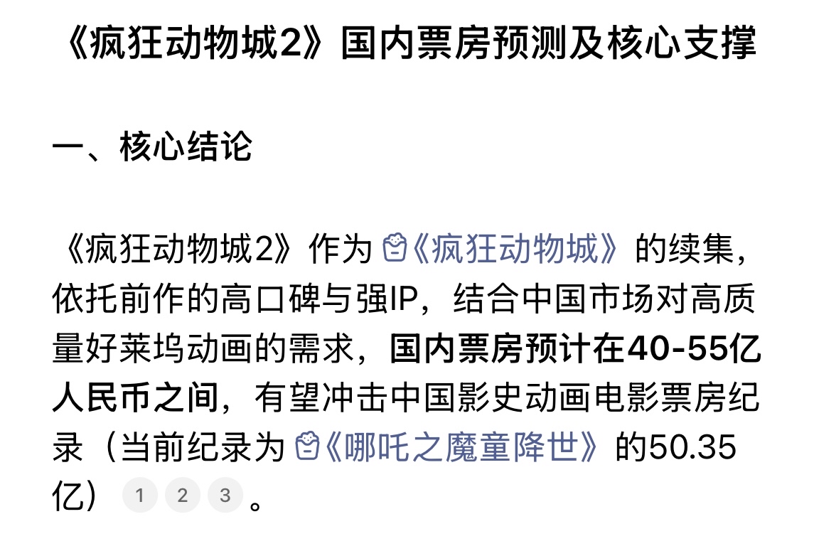 $中国电影(SH600977)$ 机构预测 疯狂动物城的国内票房将达到 40到55亿
