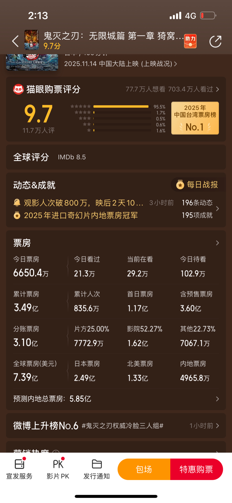 $中国电影(SH600977)$ 3.49了,晚上可能4了