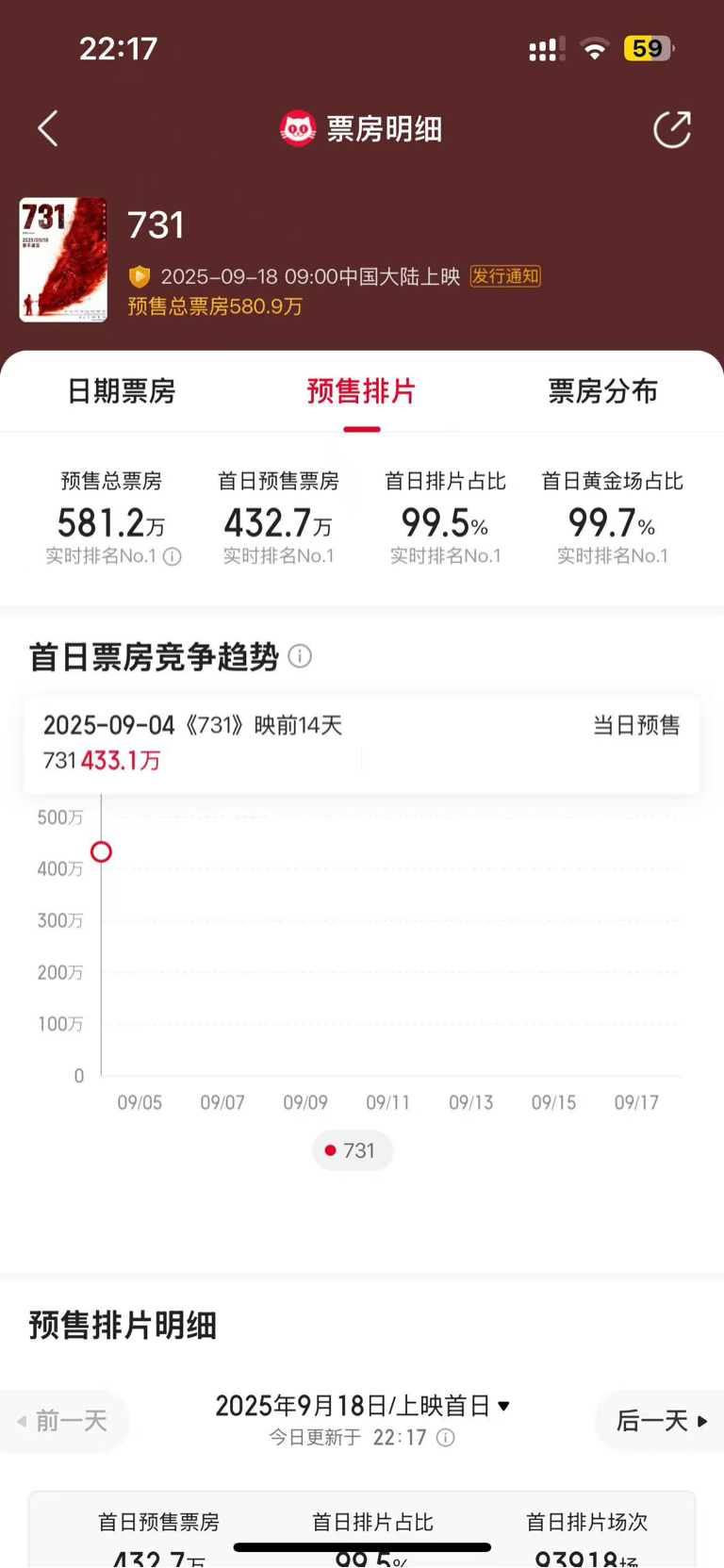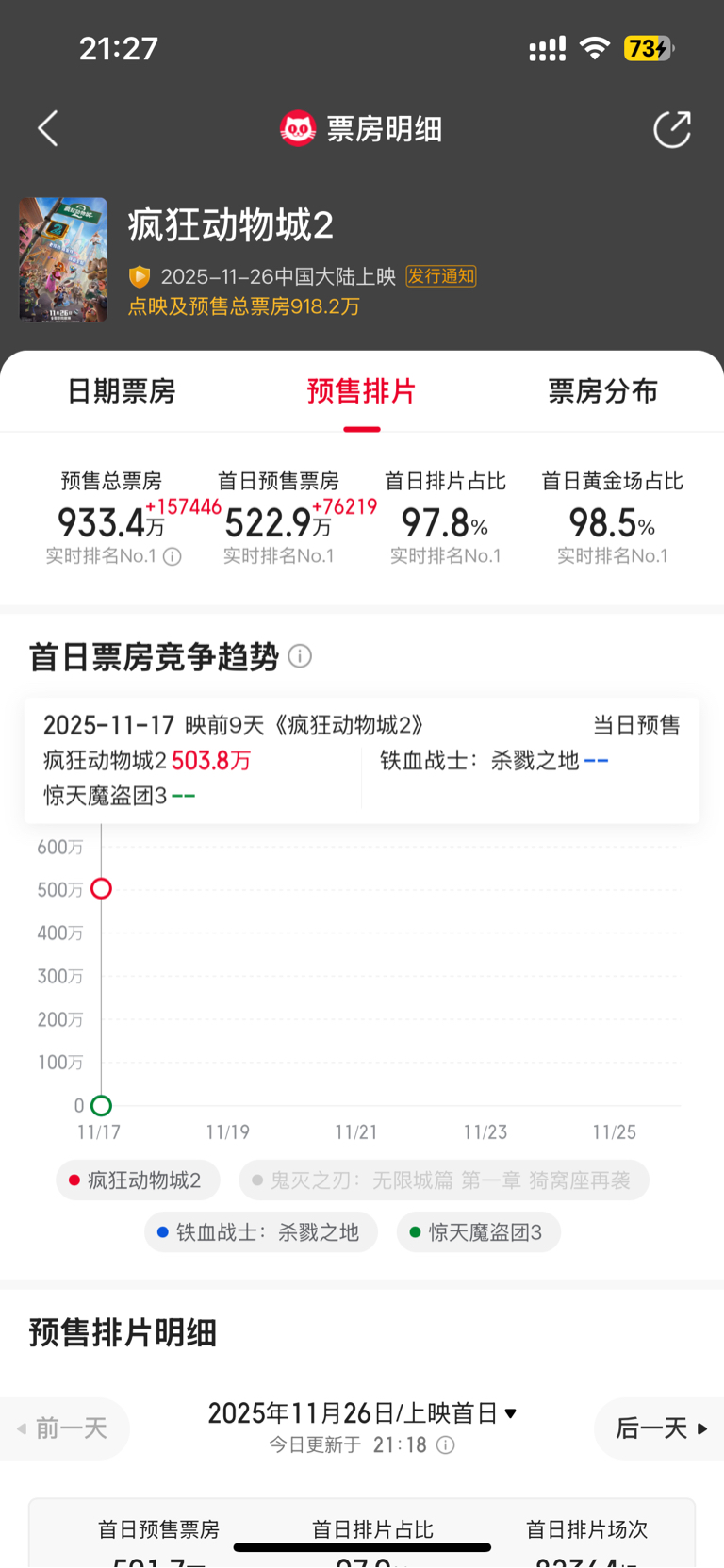 对比一下就知道。《731》第一天预售晚上22点,票房不到600万《疯狂动物城2》