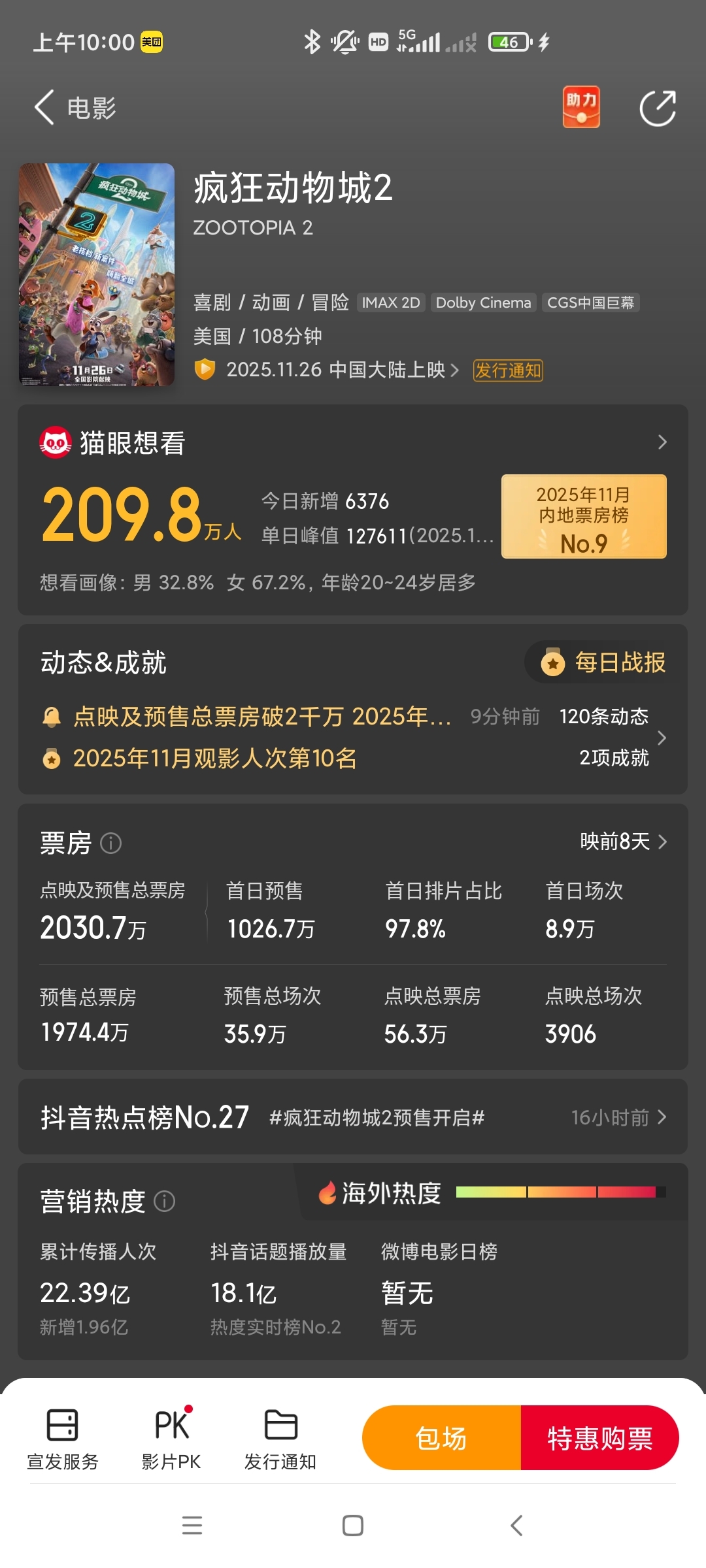$中国电影(SH600977)$ 破二千万,补完仓,坚定看好