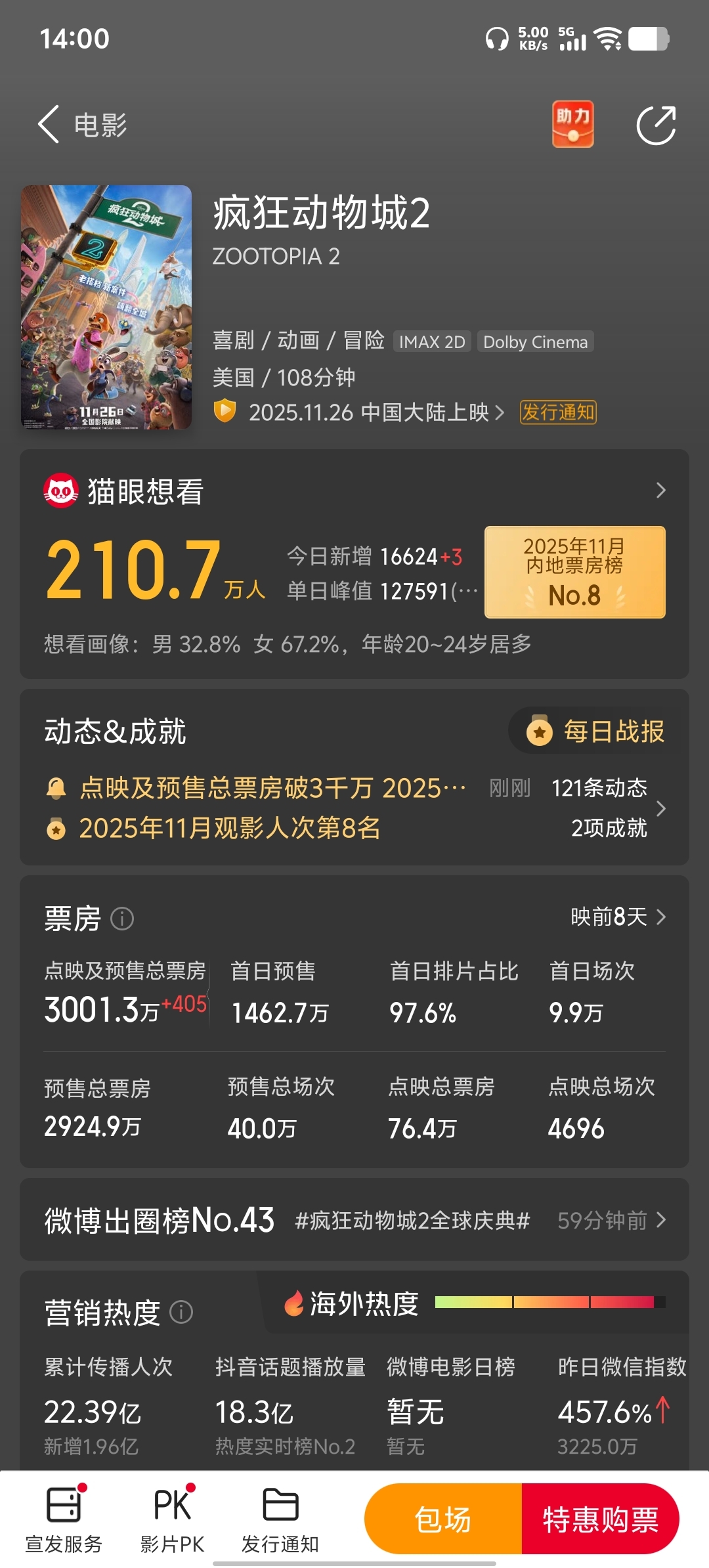 $中国电影(SH600977)$ 预售票房太火爆了都3000万,这大片就是牛逼,但是股价是使劲的砸,看样子收盘17元搞不好也守不住,再等你三天别让我失望。
