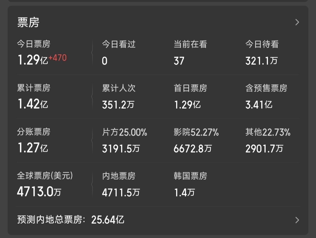 $中国电影(SH600977)$ 正式第一天,正式票房1.3亿,今天看豆瓣评分和猫眼评分首周票房和口碑发酵