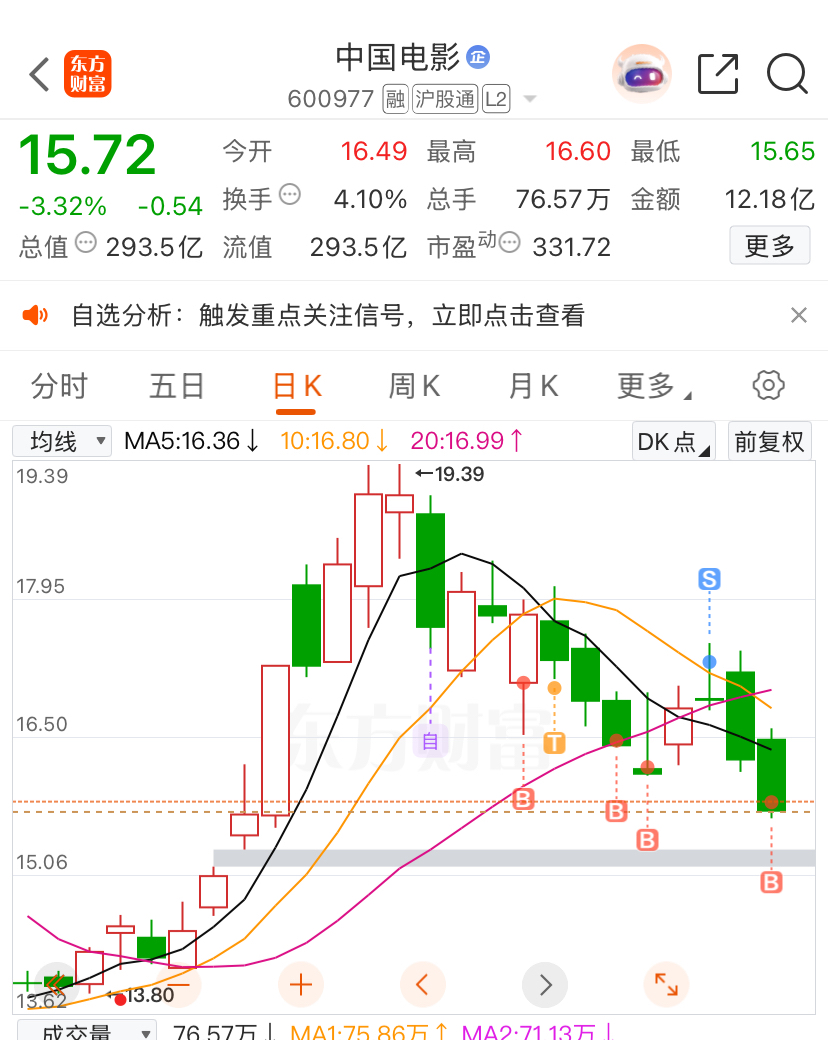 $中国电影(SH600977)$ 有发财的机会为什么把握不住,那些还在观望唱空的,自己反思下
