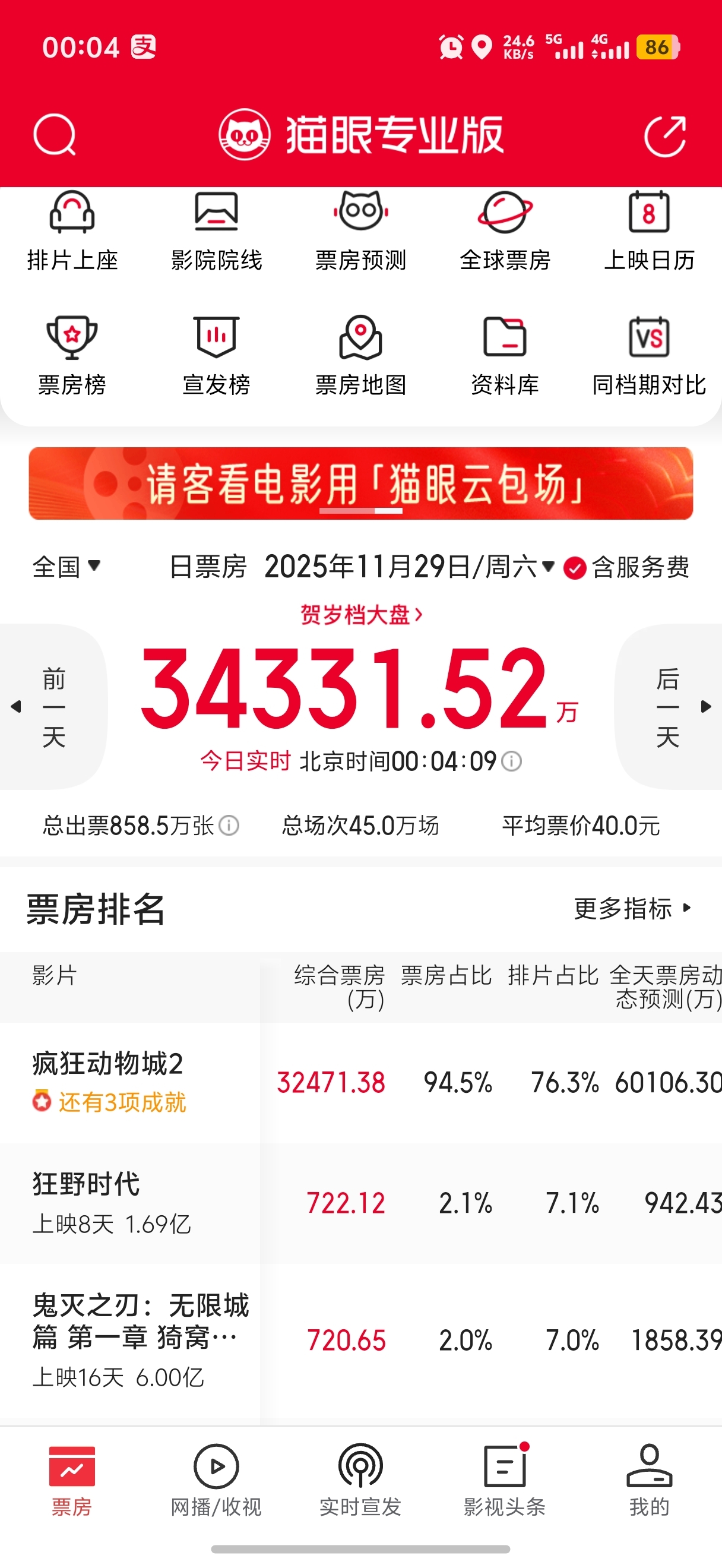 $中国电影(SH600977)$ 今天预测6亿啊,超预期了,堪比哪吒春节档啊