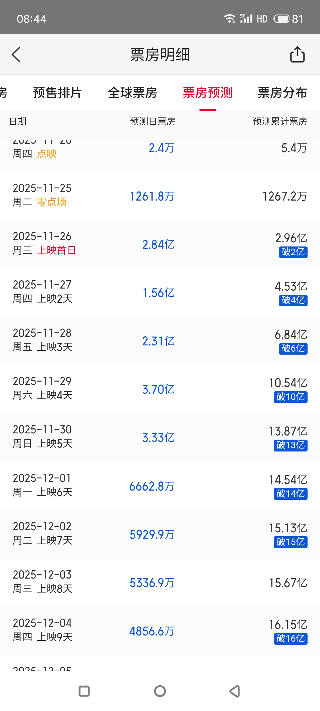 已经超26号的预期了,现在票房预测超32亿了。25号就梭哈了,目前还亏了一点,但