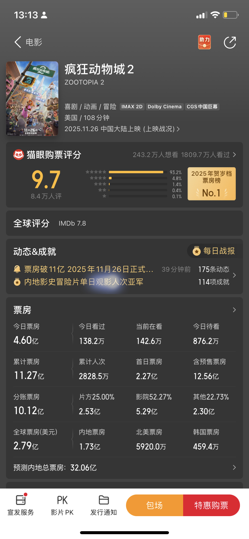 这次估计冲击全球影史动画票房第一,这周末只是开胃小菜,下周末口碑大爆,单天挑战9