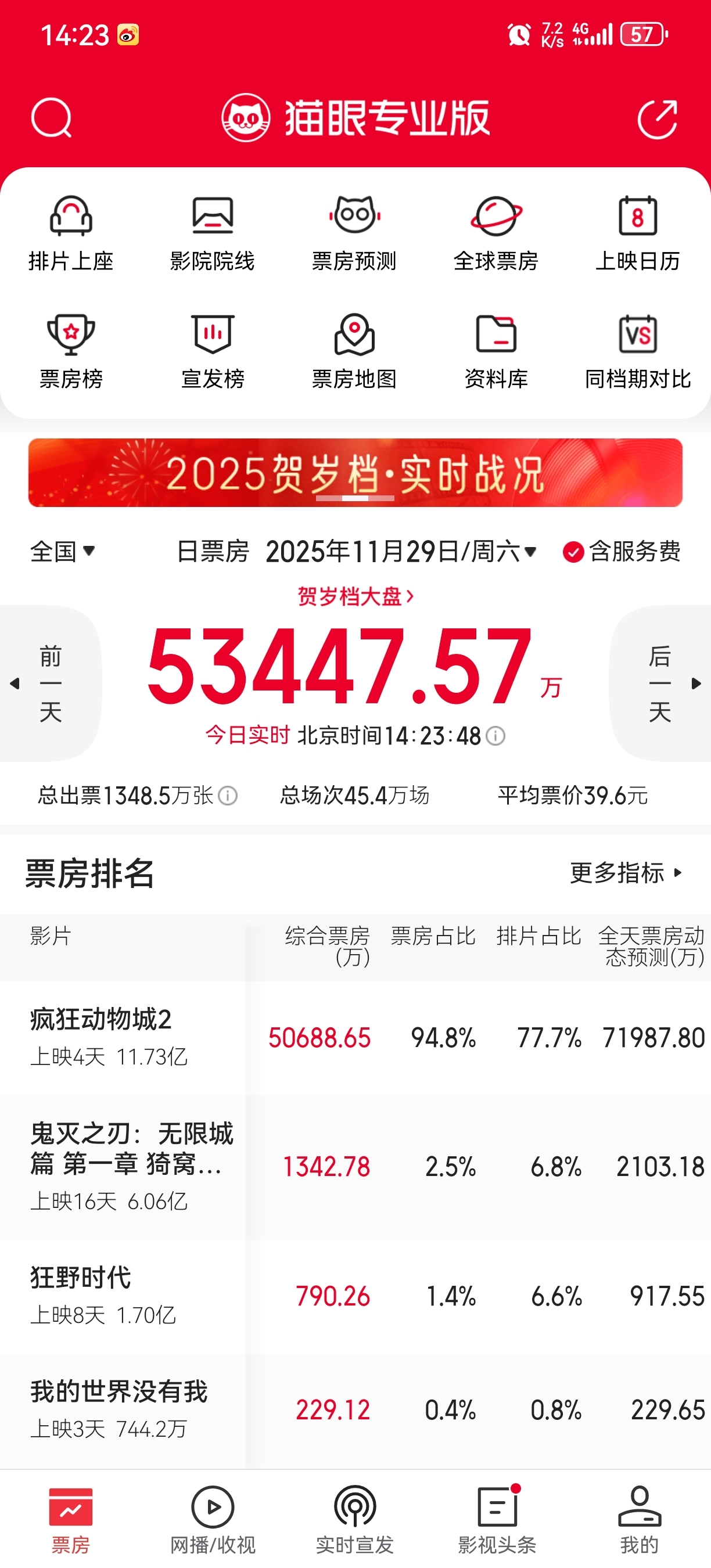 $中国电影(SH600977)$ $金逸影视(SZ002905)$ $幸福蓝海(SZ300528)$ 这个季节单日超7个亿票房,堪比超级贺岁档了!接下来还有12月19日阿凡达3上映,周末有消息持续发酵话,下周及12月份逢低关注影视股机会