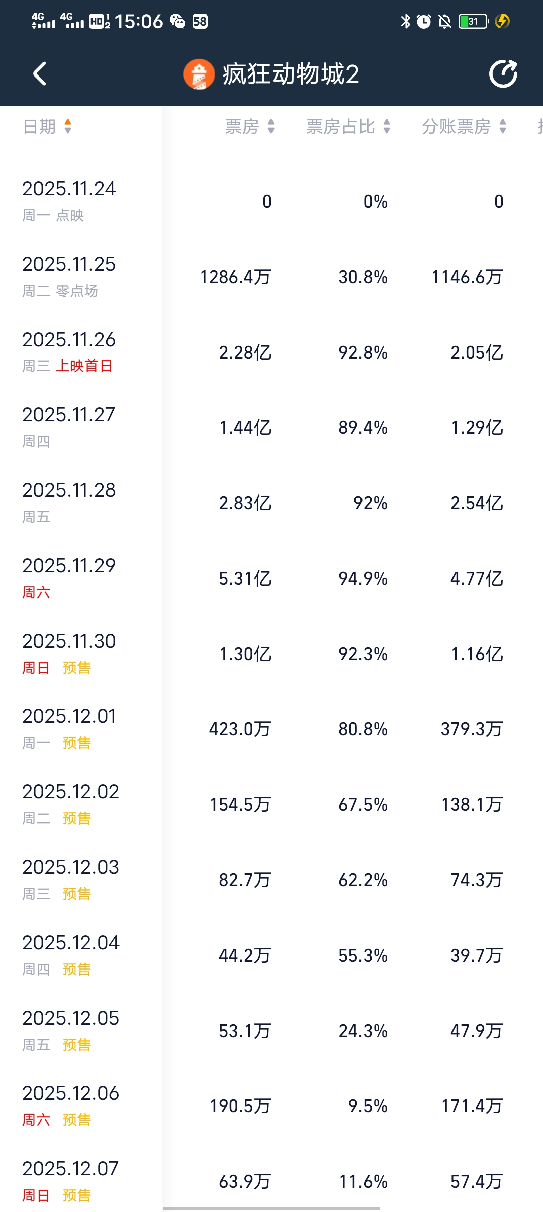$中国电影(SH600977)$ 明显的后劲不足了,下周一到周五学生上课没时间看了,到12月中旬又要被其他片挤占排片率了