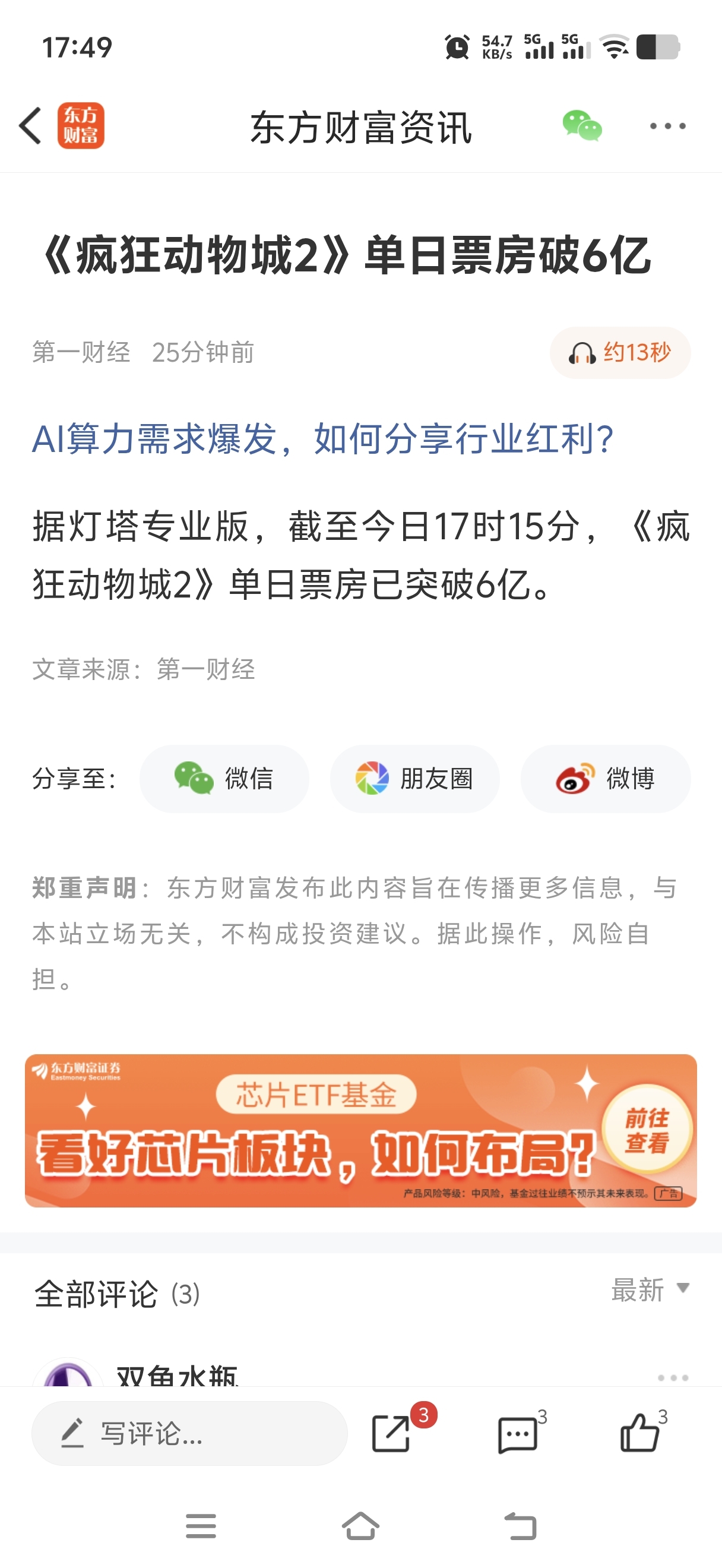 $中国电影(SH600977)$ 15个涨停板,一天6亿轻轻松松100亿