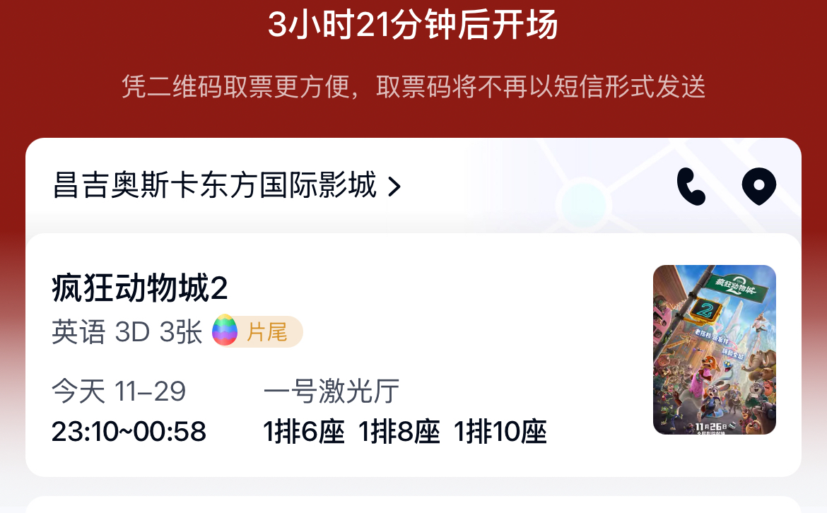 $中国电影(SH600977)$ 晚上11点多就只剩几个座位了,其他全满了,只能买前排了