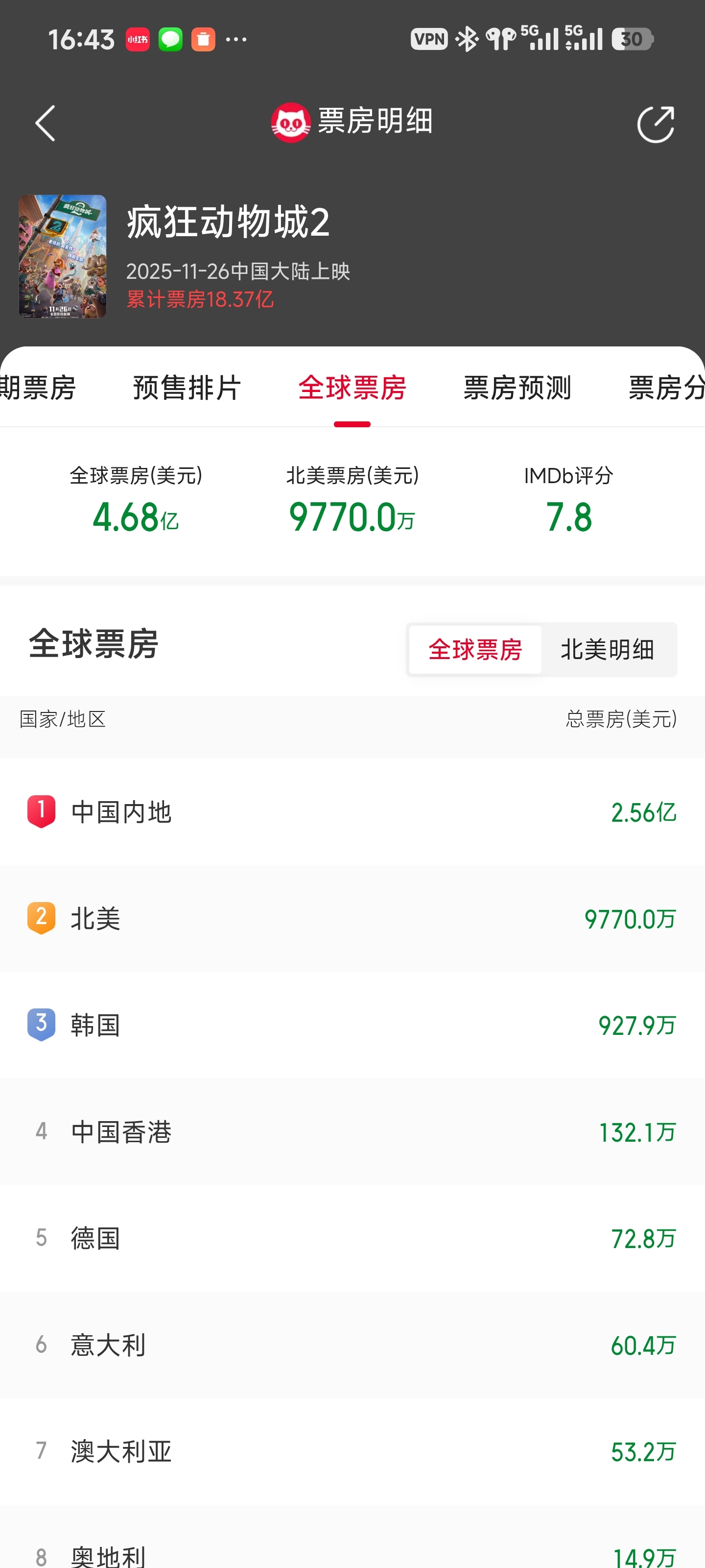 $中国电影(SH600977)$ 倒反天罡了,中国大陆的票房是最多的。。。。北美都没破e,中国都夸3e美金票房了