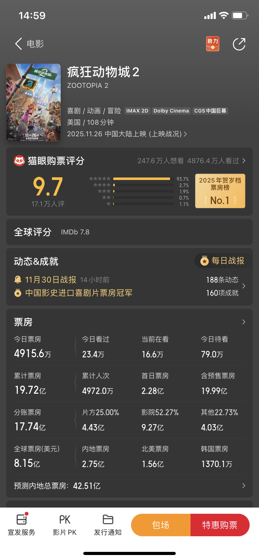 $中国电影(SH600977)$ 马上20亿票房!小朋友这周估计班级里要炸锅了,换手率1%,成交量巨低,大家坐好扶稳,一股不卖!明天小心这庄闪崩开板吓你们下车,还是那句话,赚了钱就请身边人去看电影!口碑良心循环,对得起自己投资,对得起带动消费!