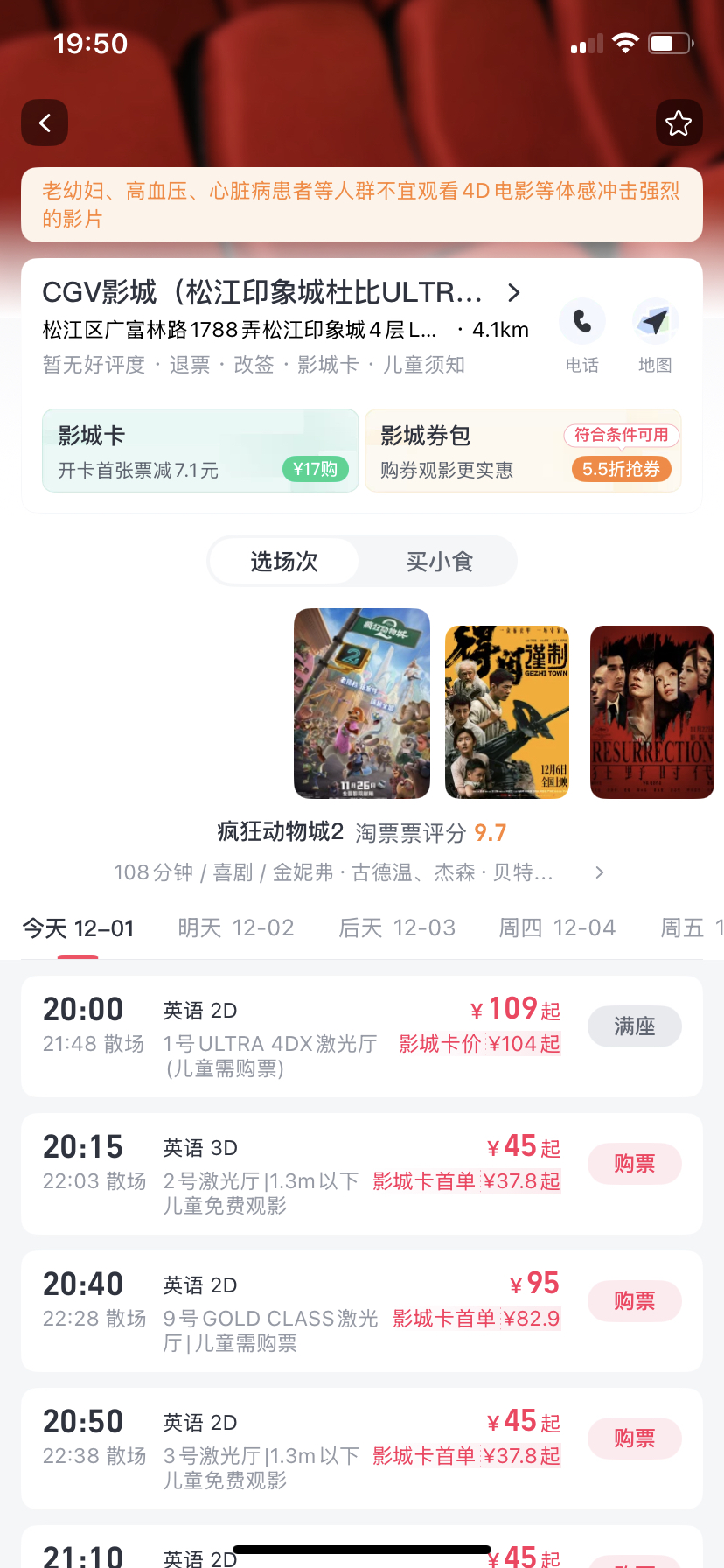 电影票都涨价了,4D前两天还85(首映75),现在109了,比股票都涨得快。