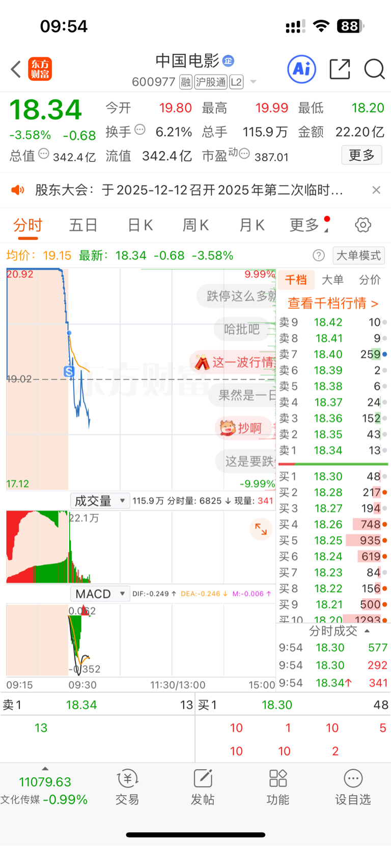 $中国电影(SH600977)$ 这票a杀厉害,先跑为敬