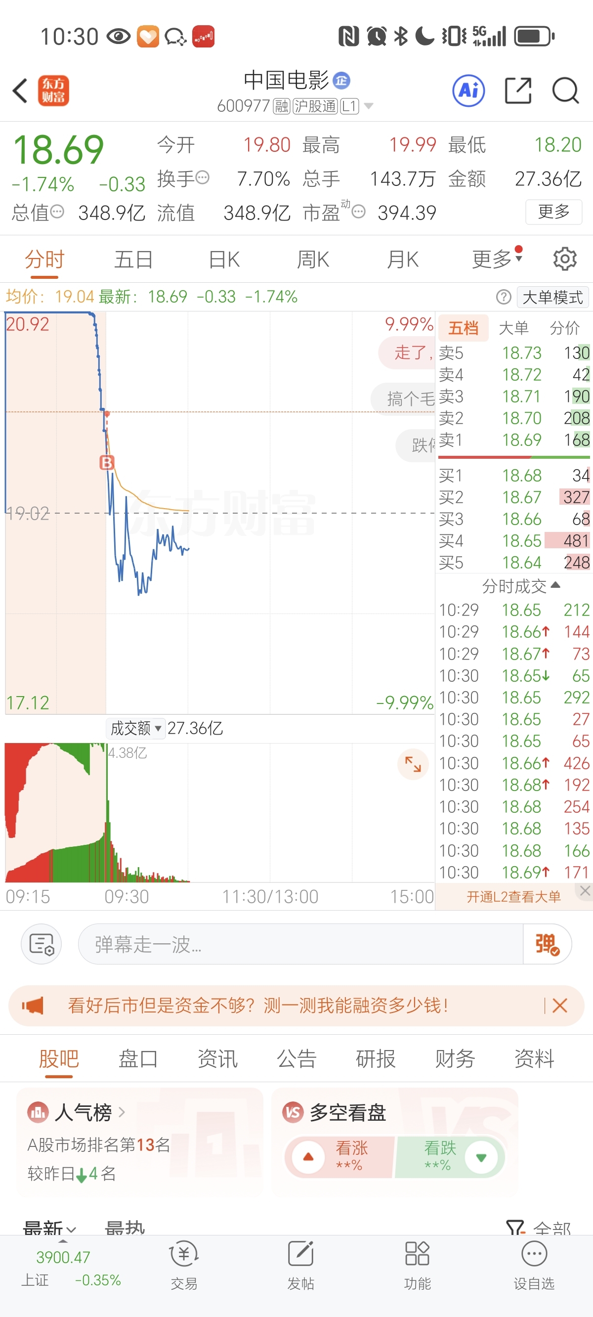 $中国电影(SH600977)$ 今天生日准备去看个电影也买了这支票。今天红不了,就清仓好好过日子了