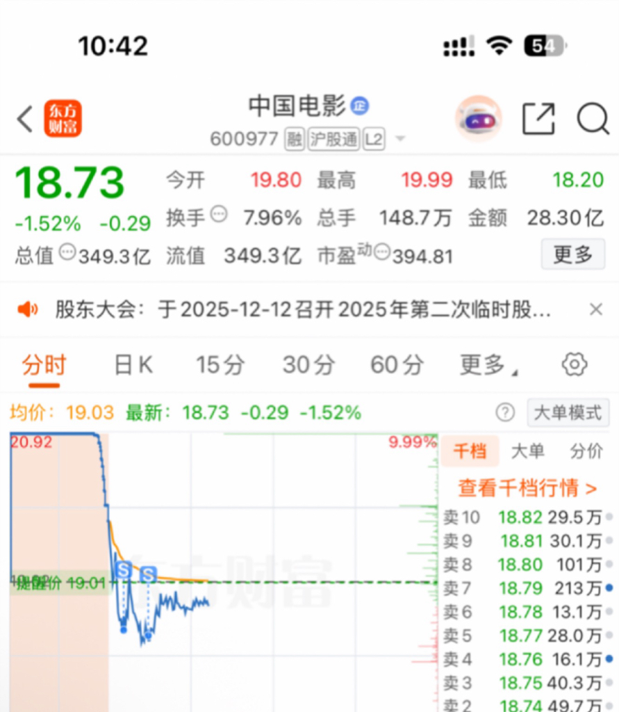 $中国电影(SH600977)$ 哎。。。。731的套昨天还有6个点还没回本....想着今天高开就能解套了...哎 逼着下沙最低点都卖了...你可以跌了 邋几