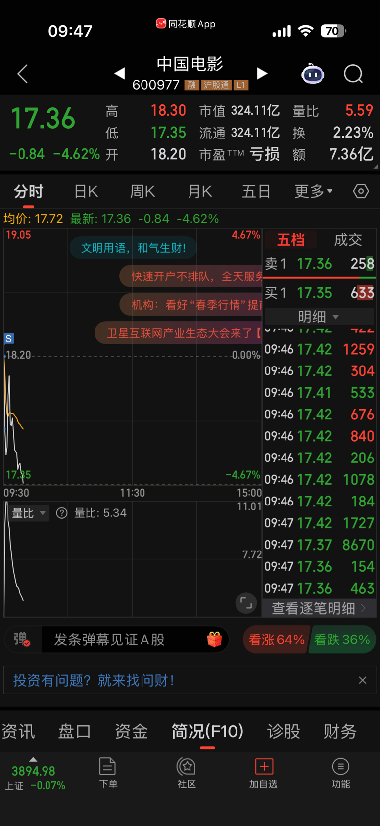 两天坑了我10个点,昨天说今天开盘就跑。以后都不买中国电影了。