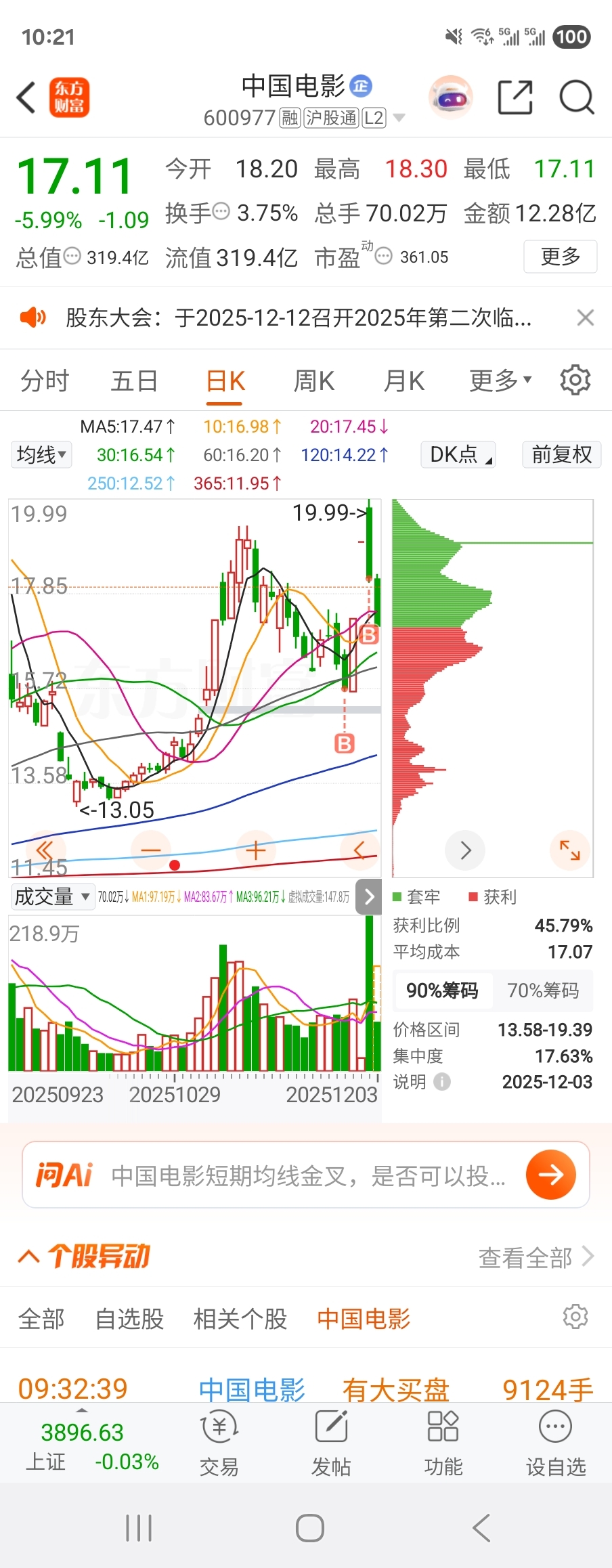 $中国电影(SH600977)$ 虽然我被套了,但我想知道那个大绿柱子筹码是谁的