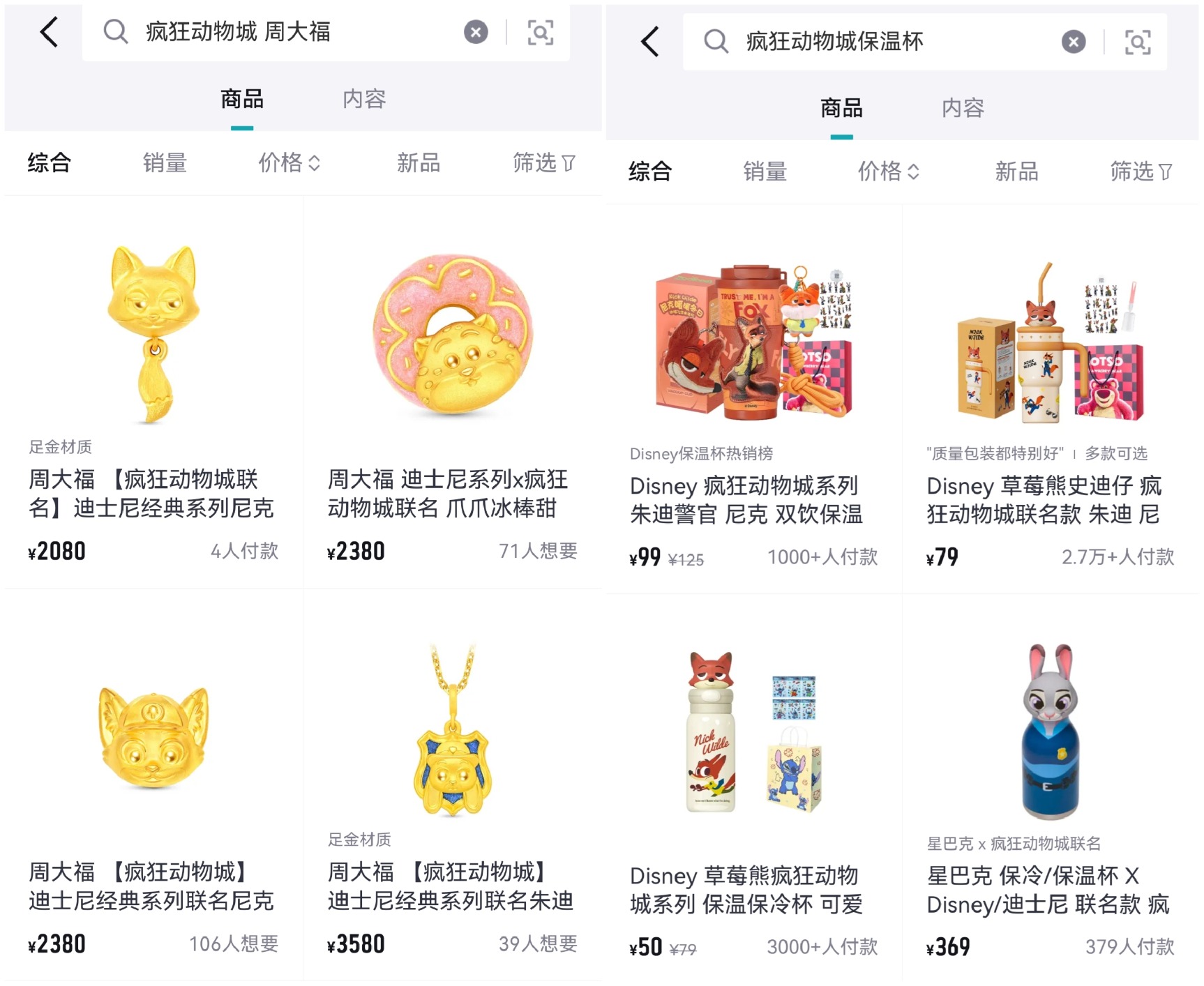 此外,《疯狂动物城2》联名周大福的“痛金”身价不低。本次周大福推出了4个系列产品,朱迪联名款胡萝卜黄金吊坠售价3280元,周大福尼克朱迪联名款转运珠售价2380元。