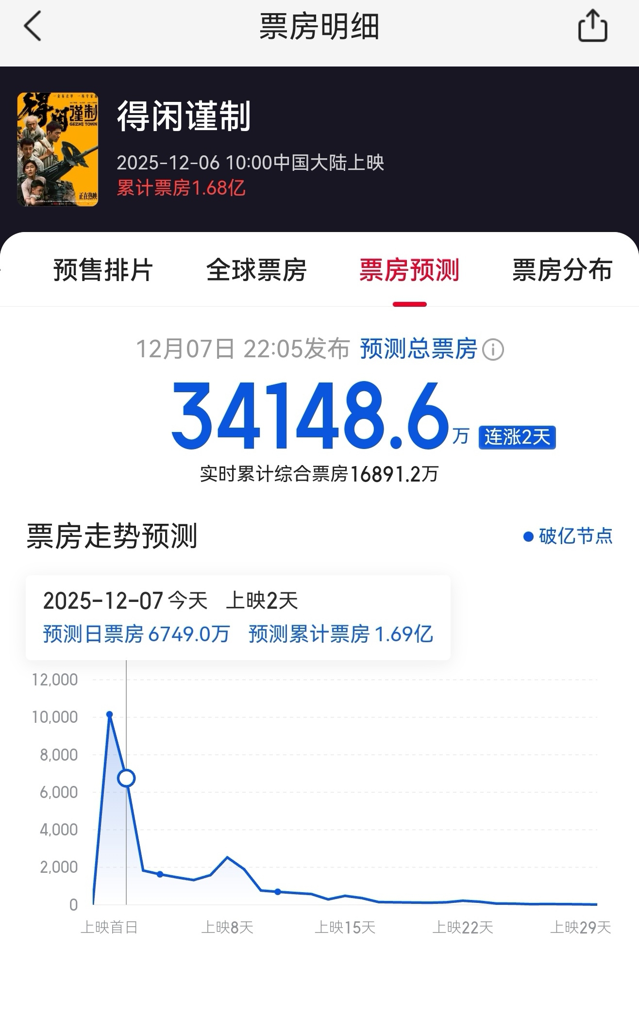 得闲谨制的票房已经扑街了,事实胜于雄辩,灯塔今晚的预测总票房3.2亿,猫眼的预测