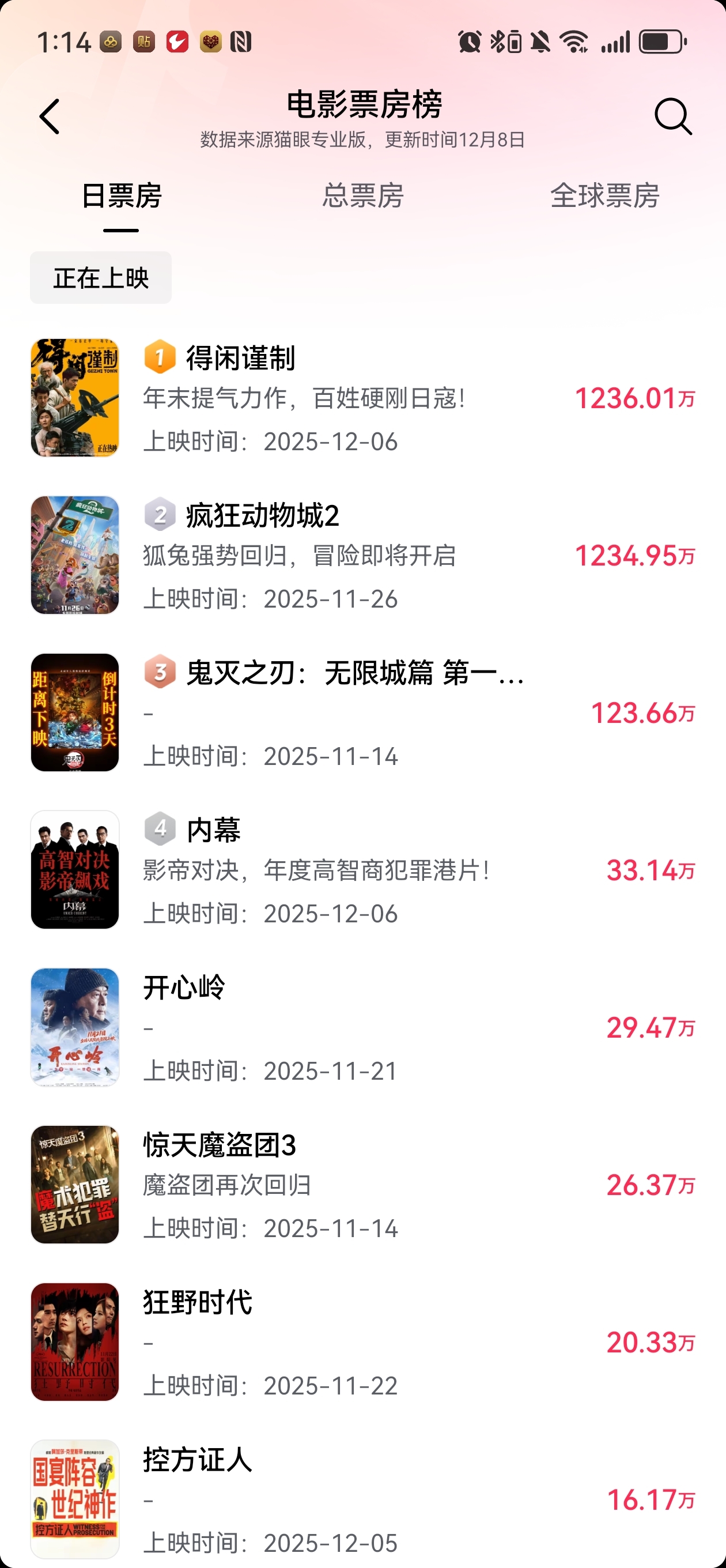 $中国电影(SH600977)$ 得闲谨制,刚开始,首日破亿,次日6千万,总票房预计最少10亿起。目前已经是超过疯狂动物城2了。后续随着口碑爆棚,票房预计爆发!