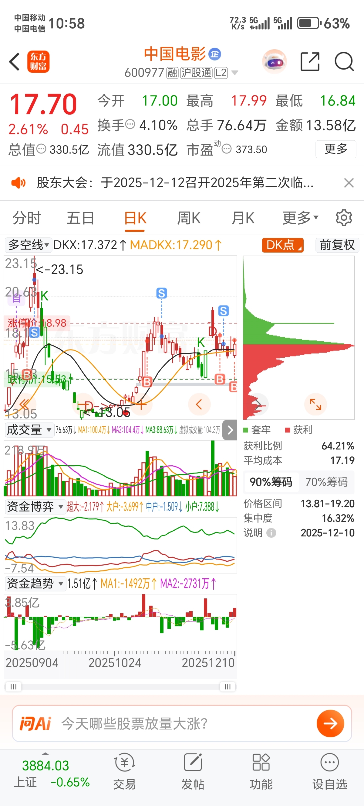 $中国电影(SH600977)$ 几进几出,最后所有的利润都还给主力了,唉。