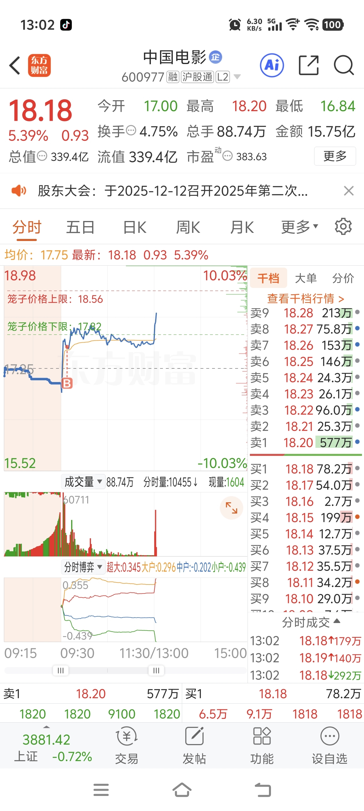 $中国电影(SH600977)$ 这么拉升,是不是要预售了利好刺激