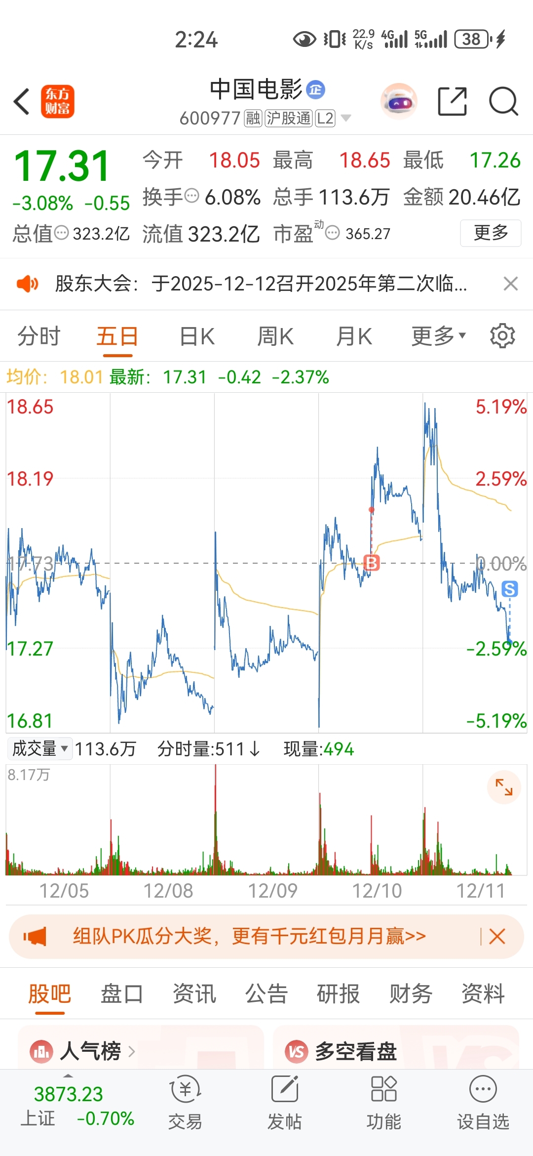 $中国电影(SH600977)$ 投降认输,最低点割肉,买博纳也不买你了