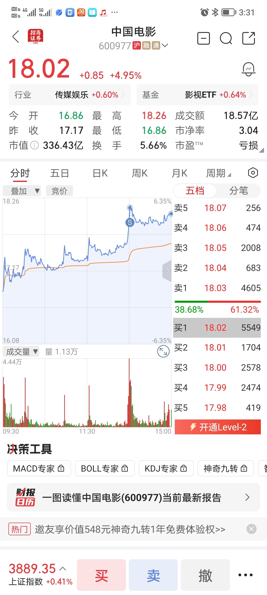 $中国电影(SH600977)$ 题材是好题材,就是盘子太大,游资不参与,清了去干龙头博纳