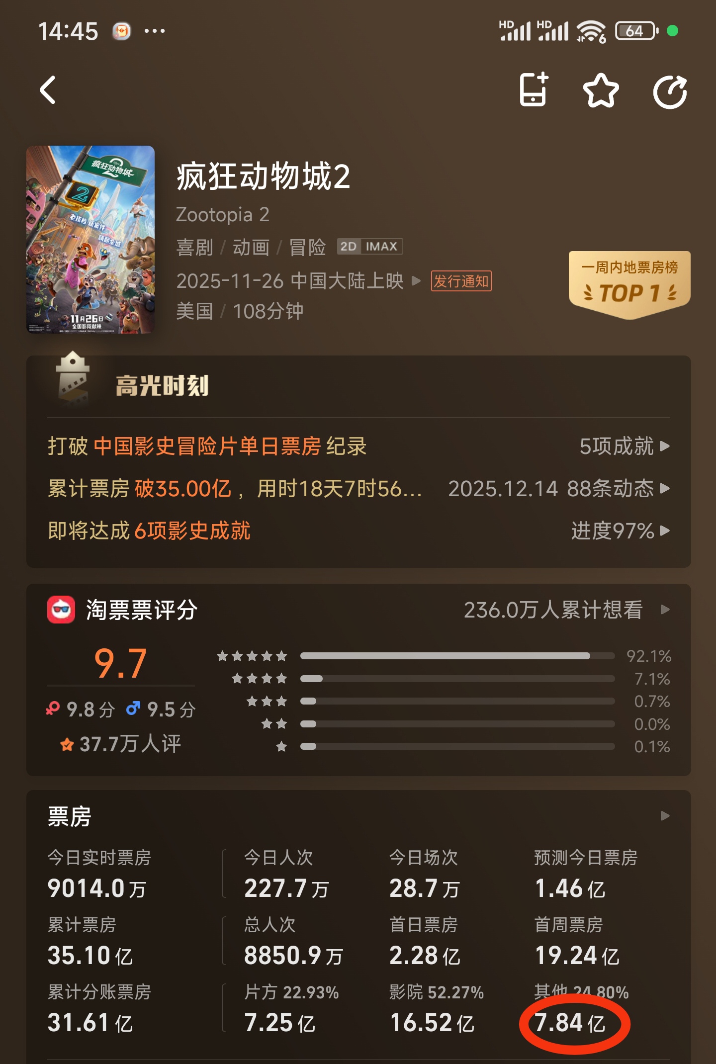 截至2025年12月14日,该片仍在多地影院正常排片放映,既有国语2D版本,也有英语、国语的3D版本。此次密钥延期也是迪士尼为影片冲刺更高票房采取的举措,目前该片内地票房已突破35亿元。