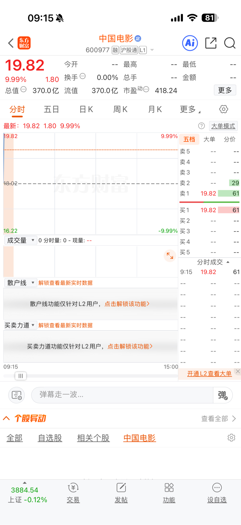 $中国电影(SH600977)$ 还是被我截到了 根本跑不掉