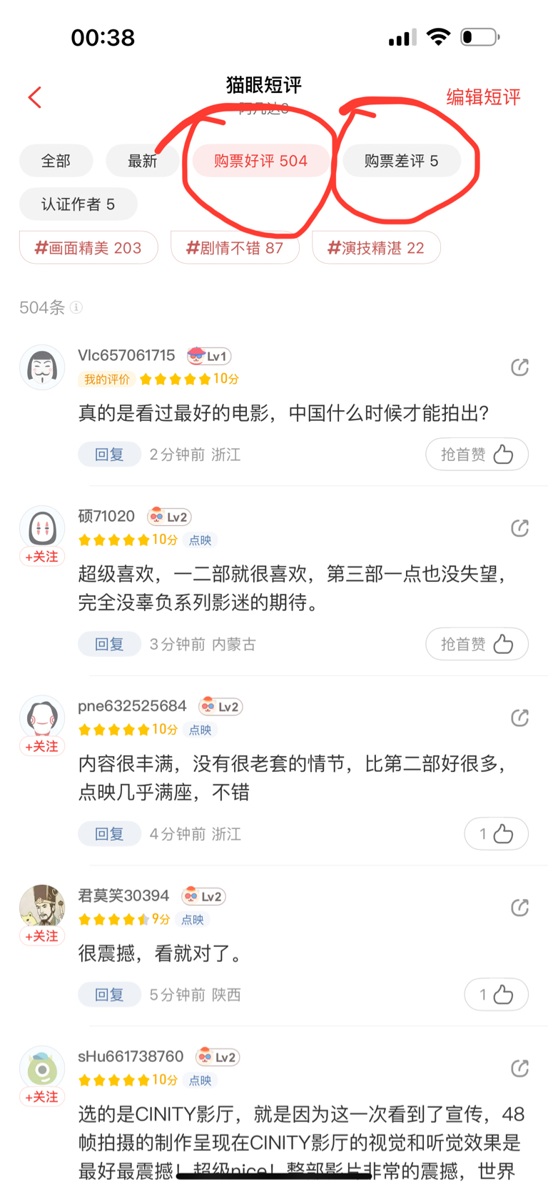 $中国电影(SH600977)$ 好评504,差评5,好评占比99%,一目了然