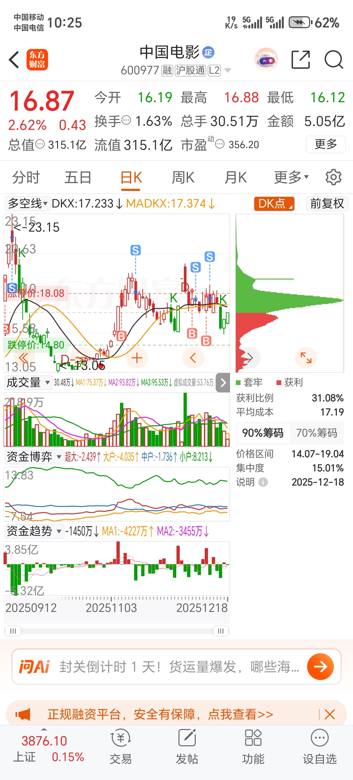 $中国电影(SH600977)$ 唉,在中国电影里面真让心,今天去博纳吃涨停去了,中国电影等我吃了几十个涨停再回来