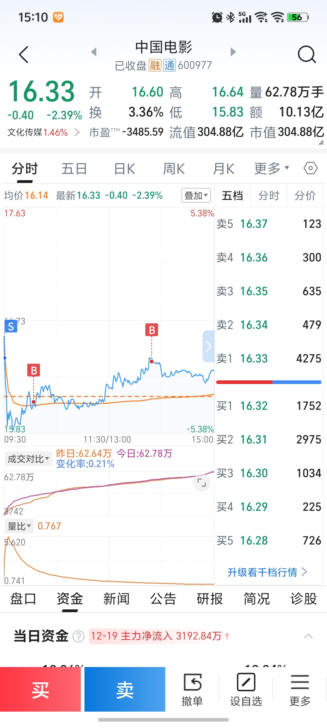 本来开盘不及预期就清仓了,转念一想做个T不是美滋滋,然后搏一搏周末阿凡达反馈加仓了,成本16.12希望下周一直接涨停封板