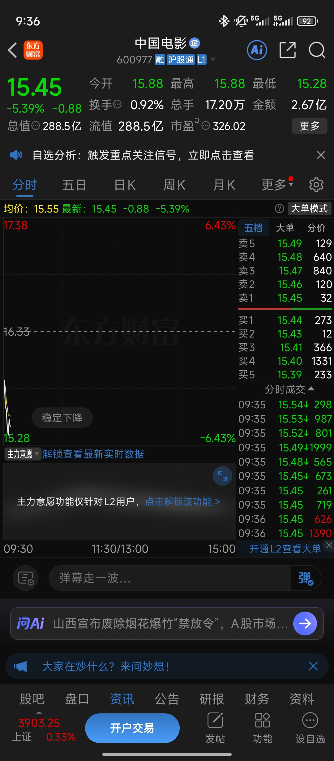 $中国电影(SH600977)$ 现在是机会,别被庄家骗筹码了