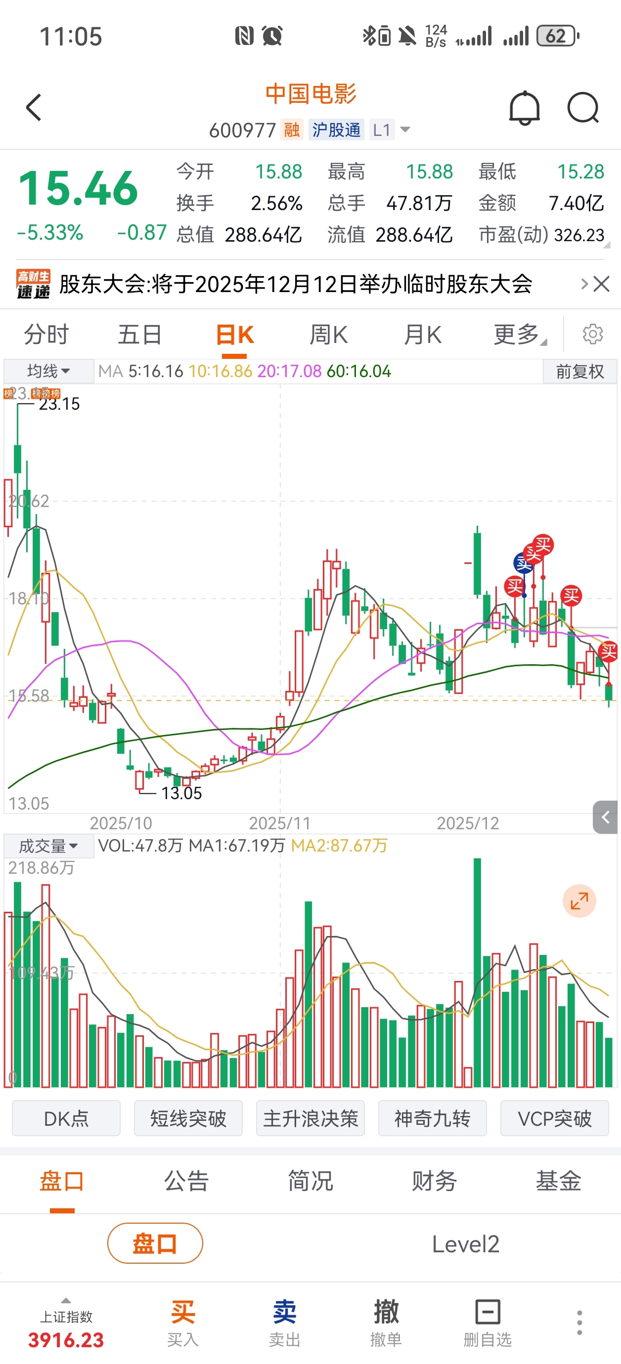 $中国电影(SH600977)$ 一股不卖,有本事套我几个月,最多拿到过年前,你让我回本必砸