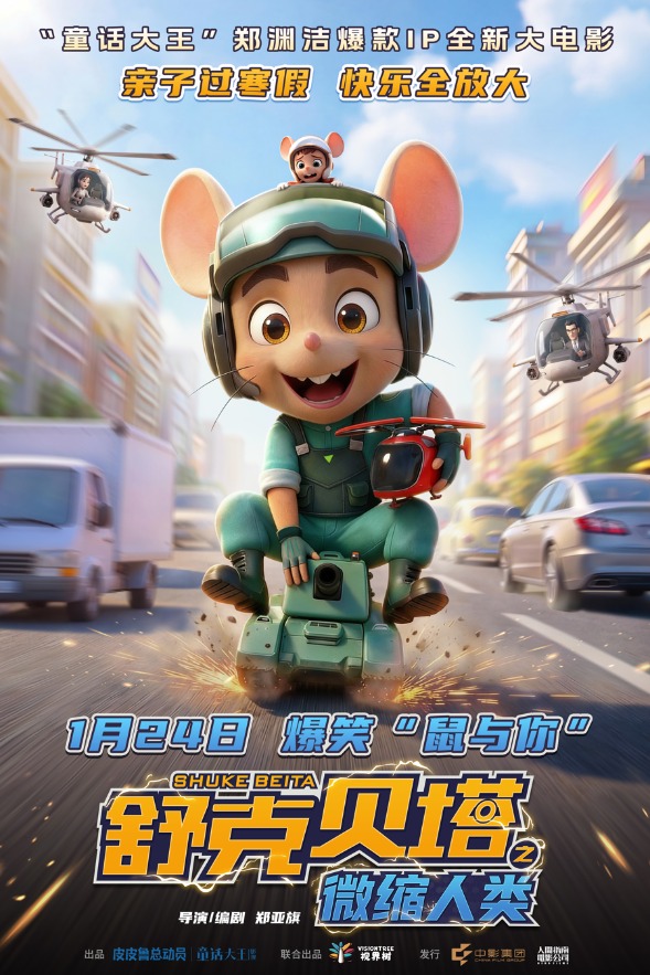 “童话大王”郑渊洁爆款IP全新大电影《舒克贝塔之微缩人类》12月23日宣布定档,影片由郑亚旗担任导演并编剧,将于2026年1月24日寒假上映。